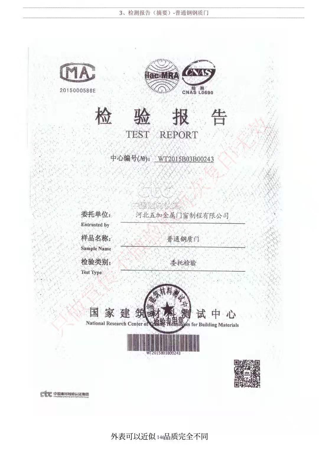 普通鋼質(zhì)門檢測報告