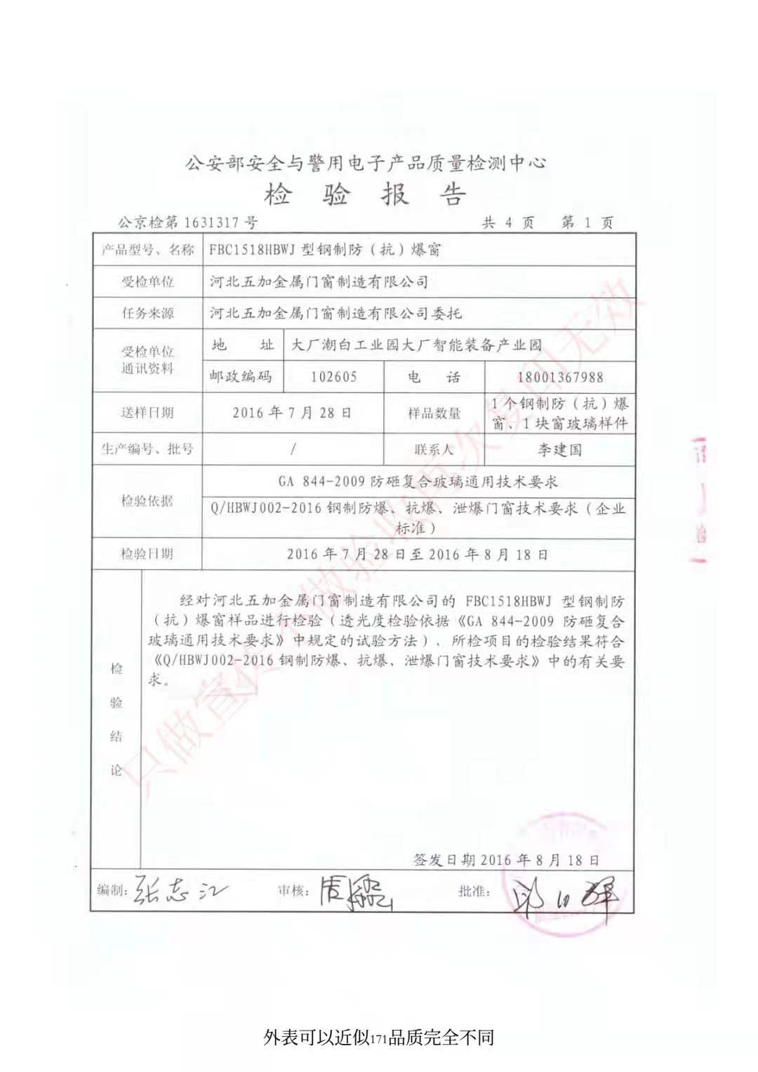 抗爆窗檢驗(yàn)報告