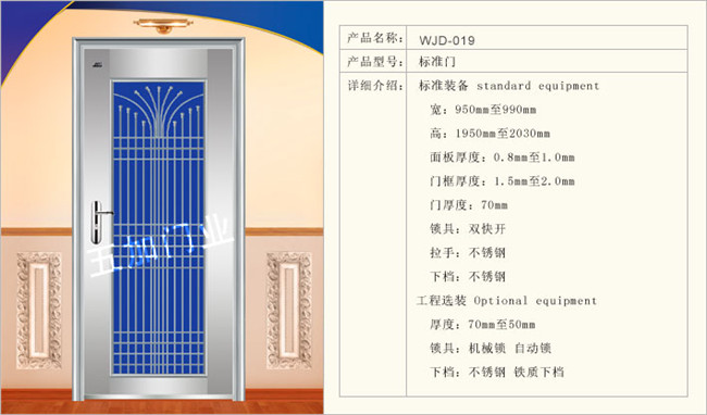 可以說是市場上見得多、老百姓用得多的。百姓所熟悉的防盜門大都屬于此系列。這類門價格較低廉和合理,它的銷量占市場總銷量的90%以上。這種門的缺點在于外型線條堅硬,很難與現代的室內裝飾相融合。