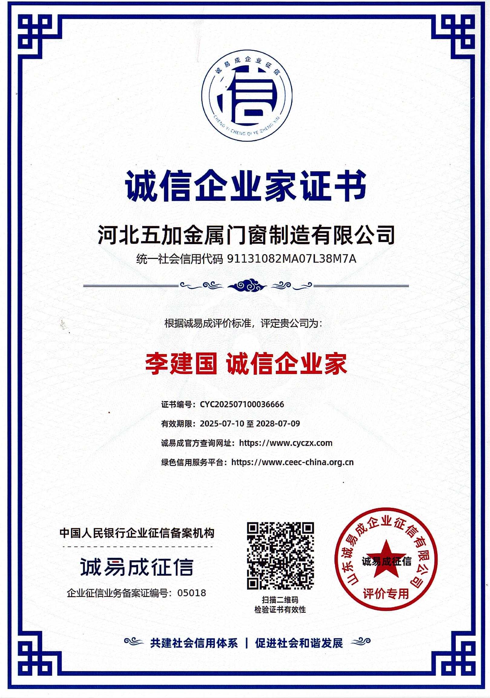 誠信企業家證書